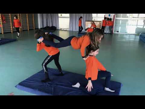 els alumnes de 4t durant aquest trimestre a Educació Física han treballat l'equilibri, la força i les relacions socials mitjançant l'Acrosport, un esport acrobàtic que integra tres elements fonamentals: la flexibilitat, la força, esmentat anteriorment, i la formació de figures humanes en grups.